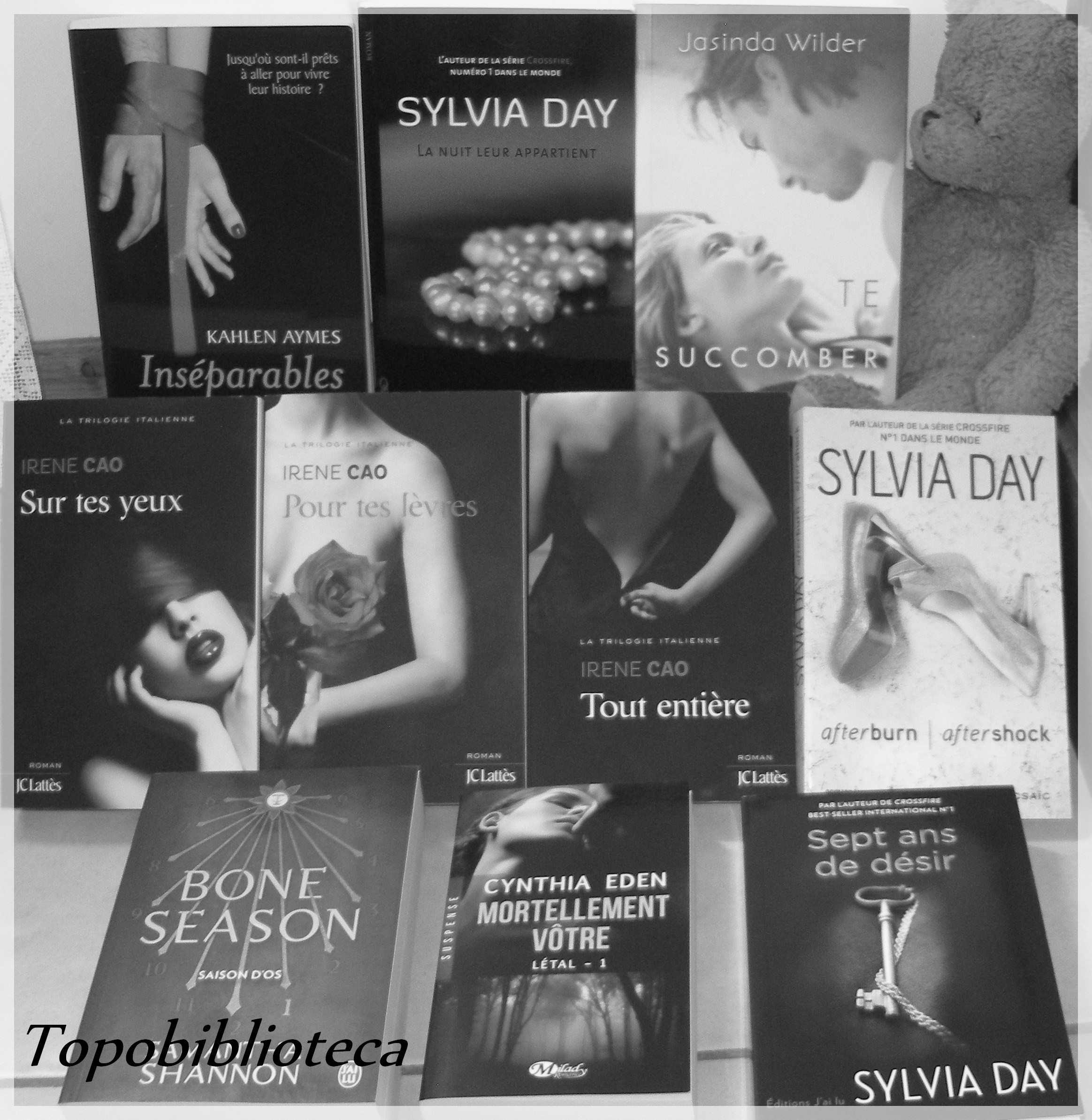 Ensuite pas mal de romances érotiques, à dire vrai je ne sais pas vraiment pourquoi, je souhaitais me faire mon propre avis sur les séries que j’ai vu passer avec La trilogie italienne de Irène Cao (éditions JC Latès) que Belledenuit a beaucoup appréciée, et m’a d’ailleurs mis l’eau à la bouche avec ses avis ! Quelques tomes 1 de séries de Sylvia Day avec Afterburn / Aftershock (éditions Harlequi, collection mosaïc), Sept ans de désir (éditions J’ai Lu), et La nuit leur appartient (éditions Michel Lafon). Et pour finir Inséparables de Kahlen Haymes (éditions City).