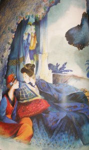 Les illustrations prennent l’espace entier des doubles pages, débordant parfois sur le texte, sans pour autant le cacher, ne coupant ainsi pas l’imagination par une séparation texte / histoire. Les contes sont illustrés en fonction de leur pays d’origine donnant une touche singulière à chaque histoire.