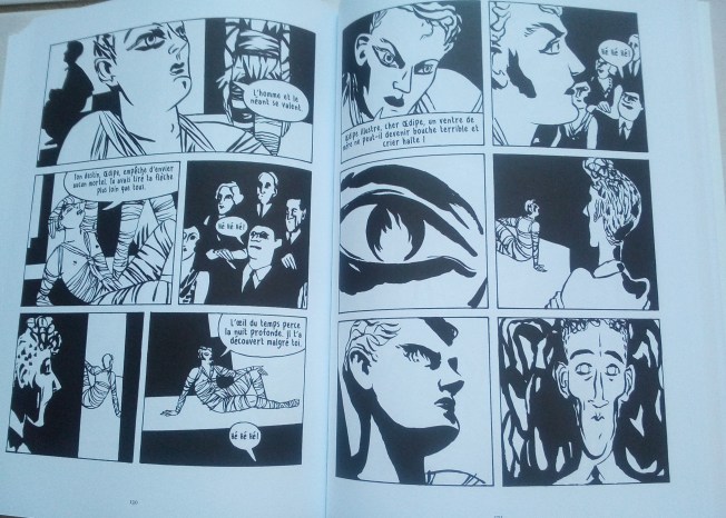 Une bande-dessinée biographique toute en noire et blanc exprimant cette état d’entre deux avant le trépas, les traits sont presque caricaturaux ou du moins théâtraux pour entrer au plus près du travail de l’artiste.