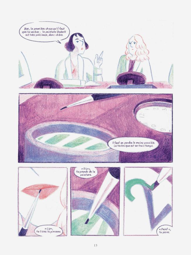 Cy redonnent une voix à ces femmes oubliées, à ces travailleuses pour qui aller à l’usine constituait une première avance dans leur liberté. Dans des tons pastels et des camaïeux de bleu et rose, elle restitue les joies et les drames d’une bande d’amies. Leur vie en dehors de l’usine et les avancées de la société. Une BD féministe mais pas que !