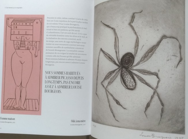 La première partie de cet ouvrage – La femme regardée – va jusqu’au moment où Courbet et Manet vont révolutionner le regard, la seconde – Les femmes qui nous regardent – jusqu’aux années 1960 et la troisième – Ces femmes qui se regardent – débute dans les années 1970, quand s’est opérée une révolution majeure pour les femmes artistes qui désormais se représentent elles-mêmes. C’est donc l’évolution du statut de la femme que ce livre raconte avec un voyage au pays de l’émancipation sexuelle et politique, de Camille Claudel à Louise Bourgeois, et de Frida Kahlo à Cindy Sherman.  »