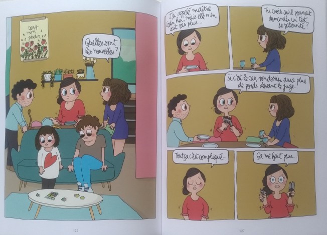 Une histoire difficile mais touchante portée par des illustrations colorées, qui donnent un côté presque enfantin et doux au récit malgré le drame qui se joue. Les deux points de vue sont évoqués, les responsabilités de prendre soin d’une enfant qui n’est pas la sienne et qu’on ne connaît pour ainsi dire pas. Et cette petite fille qui tente tant bien que mal d’avancer dans une nouvelle vie.