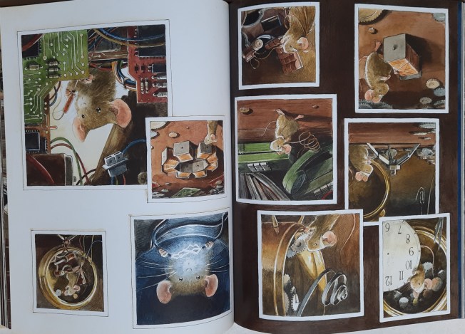Les illustrations ont ce petit vintage et détaillées d’un vieux grenier aux trésors, oubliés là depuis des siècles. Elle se suffisent bien souvent à elles mêmes et décrivent avec beaucoup d’efficacité les recherches et calculs de nos petits génies scientifiques. De grandes planches, en double page, parsèment le récit et aident les enfants à comprendre les tenants et aboutissants des différents essais. C’est agréable de pouvoir ainsi visualiser que c’est bien souvent par erreur, que l’on découvre les plus belles choses… Le chemin est plus important que le but car il nous fait grandir…
