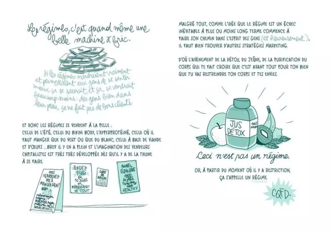 Ce carnet de bord est terriblement déculpabilisant à l’heure où le body-positive est prôné à toutes les sauces, où le bien-être est décrit comme un véritable  »art de vivre ». Mathou nous rappelle que ce n’est pas forcément en copiant les recettes véhiculées par les médias que nous nous accepterons mieux. En glanant des conseils par ci par là et en les agrémentant à notre quotidien de la façon dont nous le décidons, c’est ainsi que nous prendrons soin de nous.